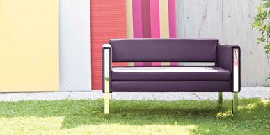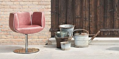 The piping, available in matching or contrasting colours. The swivel base comes in a four-star aluminium version or as a round chrome plate.