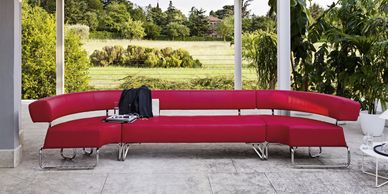 It can be configured as a combination of elements or as a single sofa, whose limits are defined by where the arms are placed.