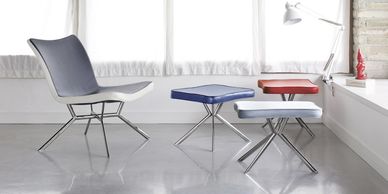 Available fully upholstered with chrome tubular sled base. The lounge version also comes with a four star aluminium base and tilt system.