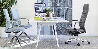 Available in presidential, executive and visitor versions with upholstered steel armrests
